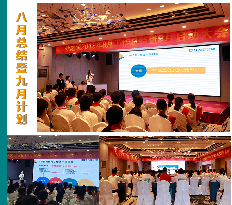 2019年9月7日,分之道 教育网络科技有限公司(以下简称“分之道”)于涵天酒店隆重举行了主题为“开学季·鲲鹏展翅·扶摇直上”的九月月会活动。分之道总经理叶乃方先生携公司高管及全体员工共同参加了本次会议。