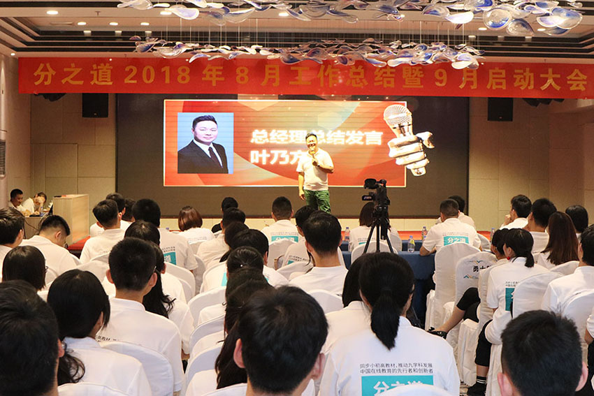 9月6日,分之道 教育网络科技有限公司(以下简称“分之道”)8月总结暨9月启动大会在广州涵天酒店顺利举行。分之道总经理叶乃方先生、运营中心、招商中心、品战中心、网络中心、行政中心、财务中心等部门的高管及员工共同参加了本次会议。