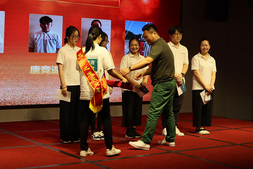 很快,现场分之道家人的热情澎湃又将会议推向另一个小高潮——招商业绩“冠亚季军”颁奖环节!台上的他们被掌声围绕,无比荣耀!台下的他们心系公司、团结互助、高效工作,为客户提供优质服务。面对困难,他们迎难而上,无数次加班加点的熟悉身影早已成为分之道里最美丽风景。能站在颁奖台上,这是对自己的一种肯定,也是对工作付出的一种回报。在分之道,只要你努力付出就一定能获得丰硕的回报!